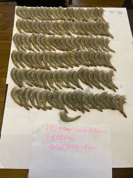 Креветки с/м бг, в панцире 21/25(130) блочной заморозки 6х1,8кг(119 шт/блок)-