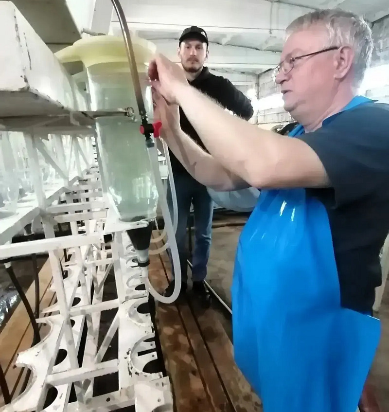 Вся драгоценная партия уже заложена в аппараты Вейса. При температуре воды +16…+18°C массовый выклев мальков ожидается уже через 5-6 суток.
