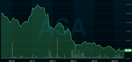 Цена акций Atlantic Sapphire за последние два года имеет тенденцию к снижению. Источник: Инфронт