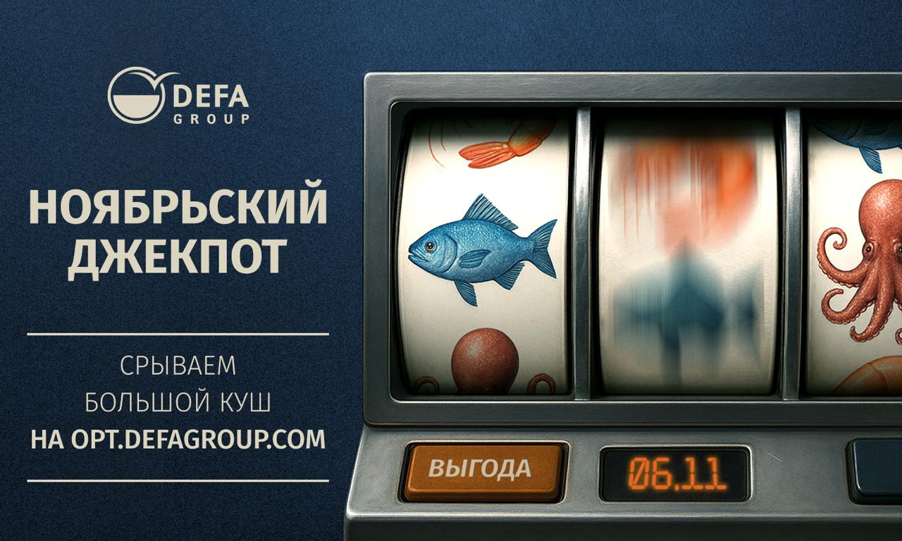 «НОЯБРЬСКИЙ ДЖЕКПОТ» от Defa group! А это значит, что уже сейчас вы сможете заказать любимые позиции рыбы и морепродуктов с отличной скидкой!