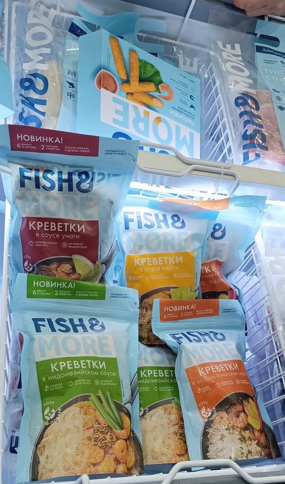 Гораздо больший интерес вызвала линейка замороженных ready-to-eat блюд из креветок: в соусе унаги/в индонезийском соусе/в соусе карри. Получилось стильно, модно, молодежно, с акцентом на Азию.