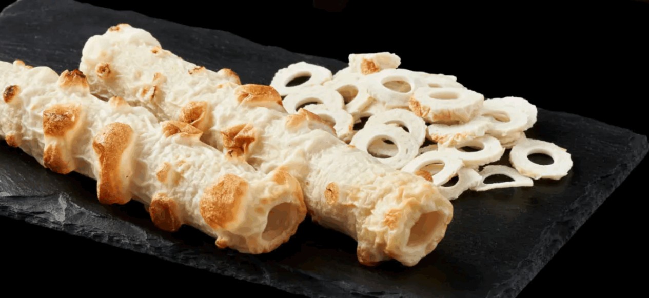 Чикува — давно уже ставший основным блюдом японской кухни — переосмыслена Марухой Нитиро в виде удобных хрустящих чипсов из сурими.