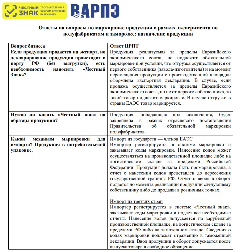 ЦРПТ ответил на вопросы рыбаков о маркировке полуфабрикатов и «заморозки»: назначение продукции (2 блок ответов)
