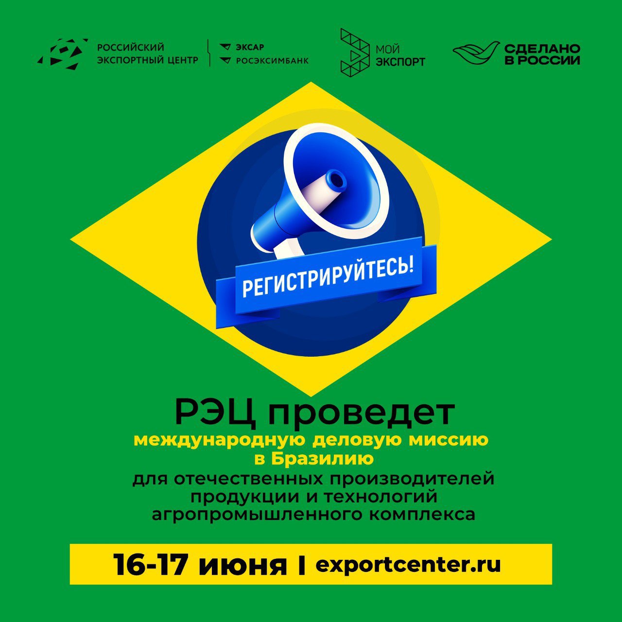 С 16 по 17 июня 2026 года РЭЦ организует международную деловую миссию в Бразилию для производителей продукции (в т.ч. рыбной) и технологий АПК Made in Russia. Бизнес-миссии РЭЦ проходят в формате персональных B2B-переговоров.
