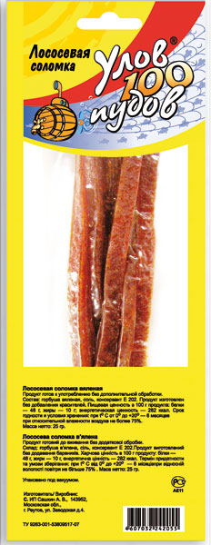 - Лососевая соломка ТМ «Улов 100 пудов», 40г. - серебряная медаль и диплом