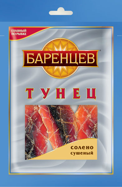 - Тунец солено-сушеный ТМ «Баренцев», 50г. - серебряная медаль и диплом