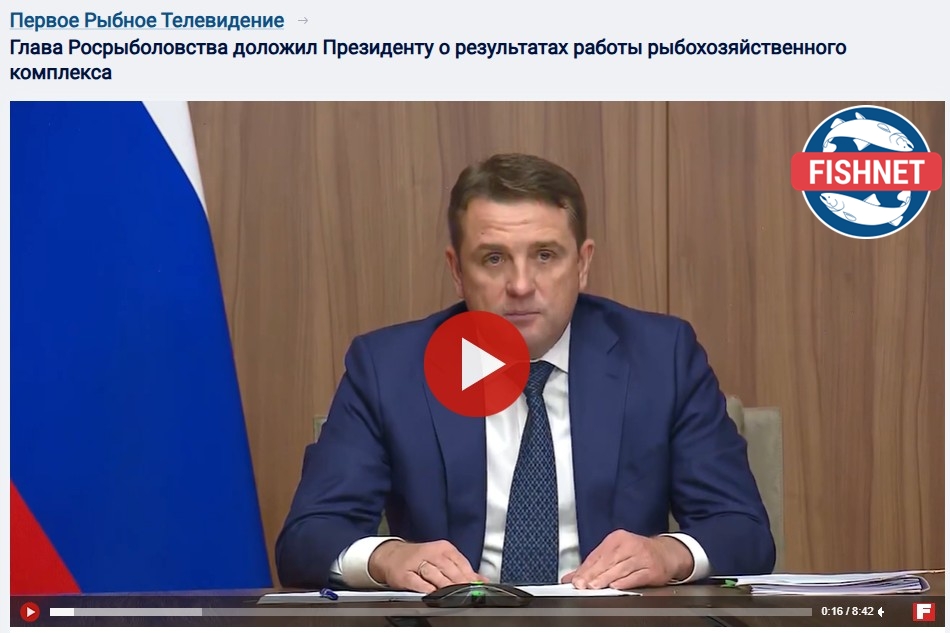Глава Росрыболовства доложил Президенту о результатах работы рыбохозяйственного комплекса (видео на Первом Рыбном ТВ)