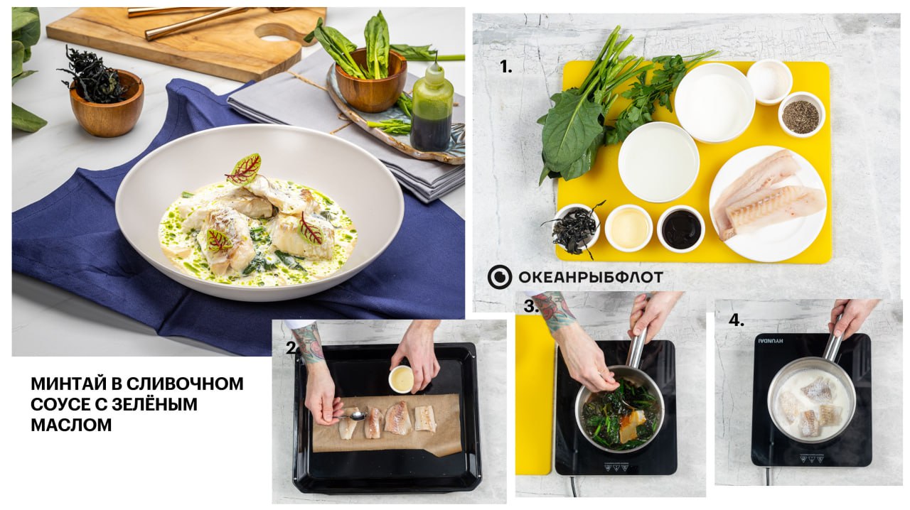 Минтай в сливочном соусе с зелёным маслом (фото)