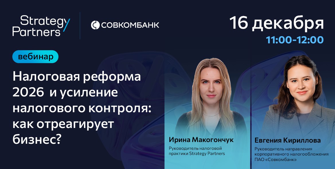 16 декабря в 11:00 состоится вебинар "Налоговая реформа — 2026 и усиление налогового контроля: как отреагирует бизнес?"