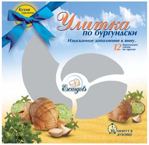 Улитка фаршированная по-бургундски в коробочке (12 шт, вес 170 гр) - 120 руб. Цена с НДС 10% | Улитка фаршированная по бургундски (в пакетах, вес 500 гр.) - 330 руб. Цена с НДС 10% |