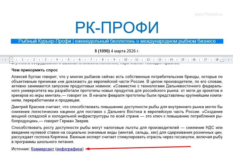 Здравствуйте. В выпуске Рыбного Курьера-ПРОФИ (№8 (1090) от 4 марта) я давал инфографику к этой статье (указывается внизу возле источника). В 99% к бюллетеню добавляются ссылки на документы/ фото и любые графические материалы.