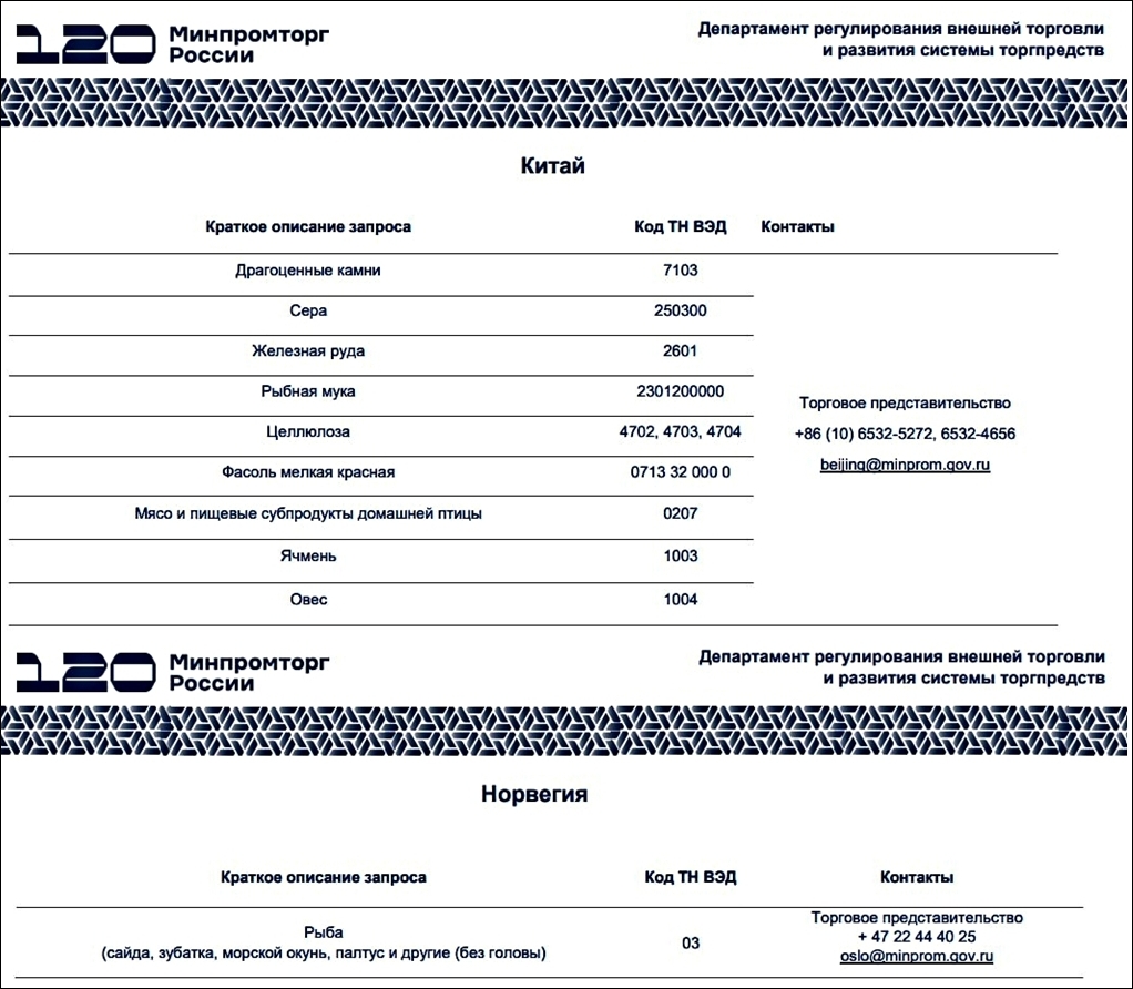 Минпромторг опубликовал ноябрьский Реестр запросов иностранных компаний на импорт российской продукции.