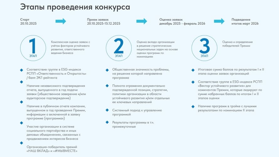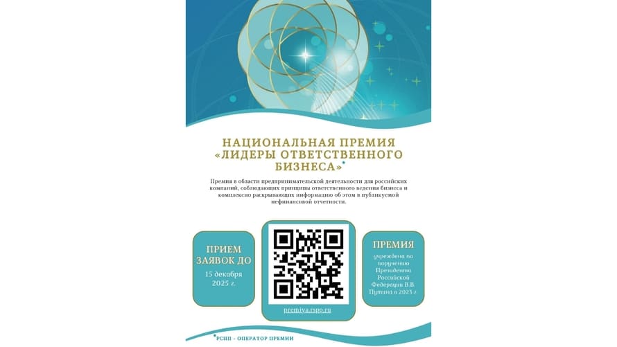Российский союз работодателей-рыбопромышленников (РСРР) и ВАРПЭ приглашают рыбопромышленные компании к участию в национальной премии «Лидеры ответственного бизнеса», утвержденной по поручению Президента России Владимира Путина. Прием заявок завершится 15 декабря. Церемония награждение победителей состоится на съезде РСПП-2026 при участии главы государства.