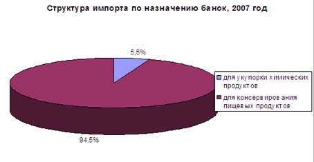 Структура импорта жестяных банок по назначению в 2007 году выглядит следующим образом: