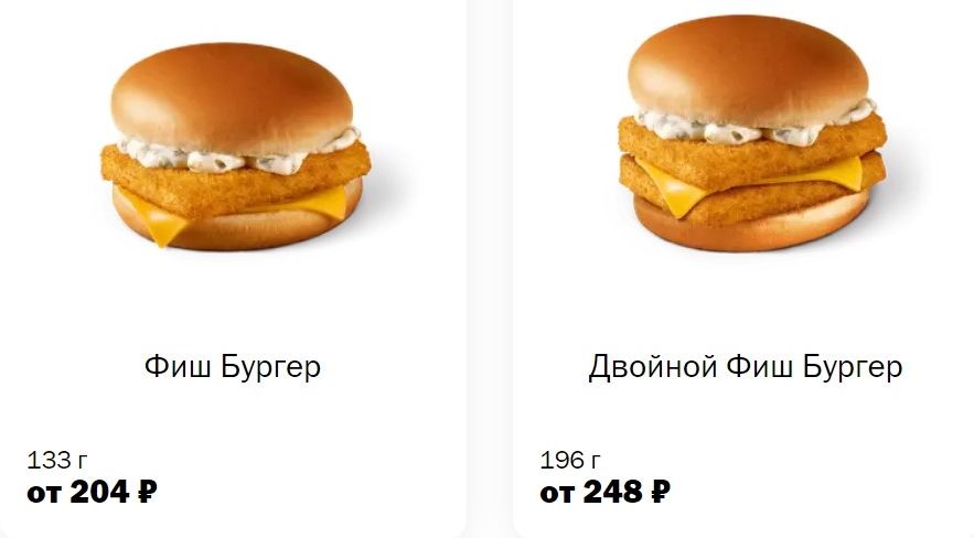 Цены на Фиш Бургер в известной российской сети общественного питания от 204 рублей за 133г.