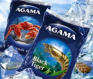 Кроме того, этот образ присутствует и на упаковке морепродуктов Agama, как нельзя лучше отражая экспертность и масштабность бренда: Agama - морские деликатесы самого высокого класса со всех уголков земного шара, в основе их качества инновационные процессы производства и хранения. Лицевая сторона упаковки напоминает окно иллюминатора, через которое можно заглянуть в удивительный подводный мир. На оборотной её стороне изображён продукт в шаре льда. Это символ натуральности и экологичности продуктов Agama, которые сохраняют неповторимый вкус благодаря специальной методике глубокой шоковой заморозки.