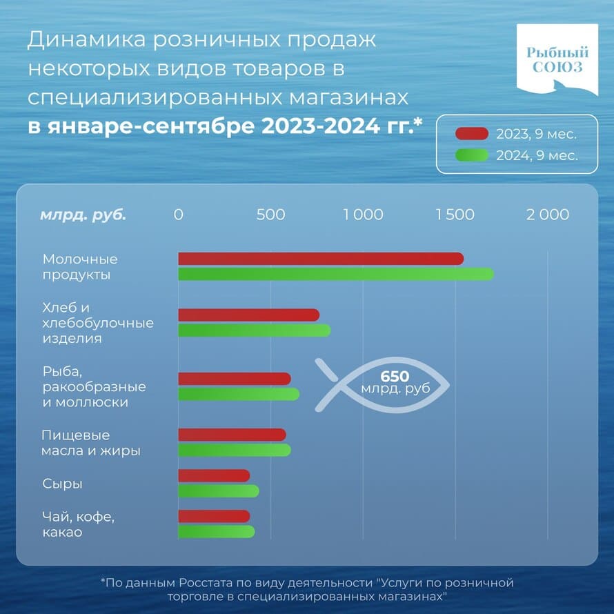 Один из факторов развития рынка - рост розничных продаж категорий товаров реализуемых преимущественно в гибкой потребительской упаковке, в том числе рыбы, ракообразных и моллюсков. По данным Росстата за 9 месяцев 2024 года, объемы продаж рыбы, ракообразных и моллюсков в специализированных магазинах выросли на 10% к аналогичному периоду 2023 года - до 650 млрд рублей.