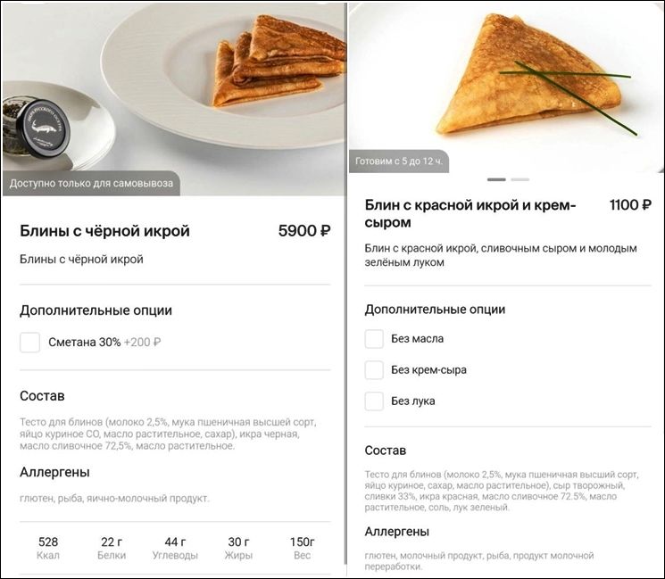 В Кофемании предлагают блины с чёрной икрой “всего” за 5900 р., а с красной икрой “всего” 1100 р.