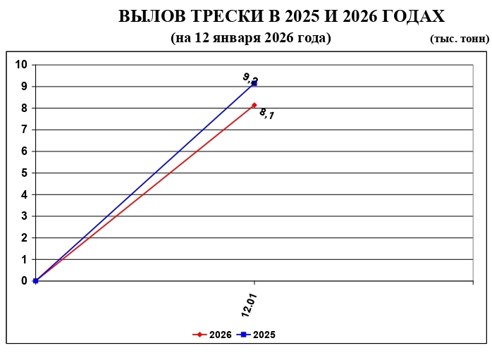 Общероссийский вылов водных биоресурсов к 12.01.2026 превысил 139 тыс. тонн (инфографика)