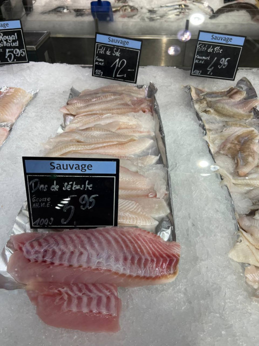 Ассортимент и цены на рыбную и морскую продукцию в Женеве (фото)