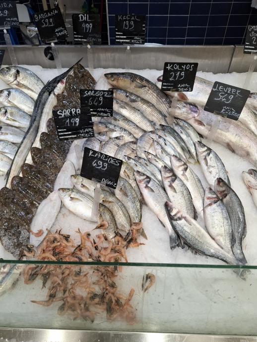 Ассортимент рыбной и морской продукции в Аланье (Турция)