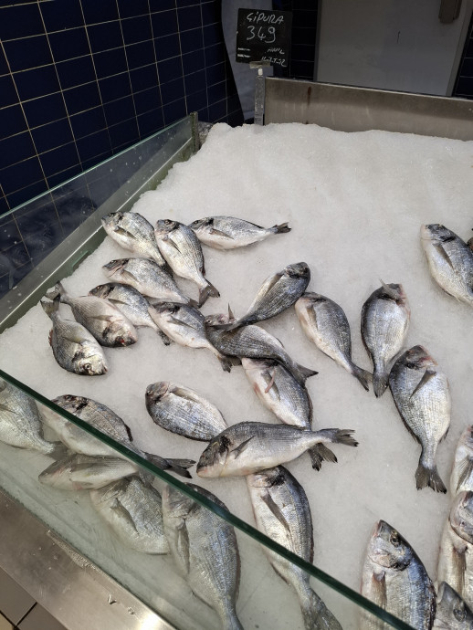 Ассортимент рыбной и морской продукции в Аланье (Турция). Цены указаны в турецких лирах. 1 лира = примерно 2 рубля.