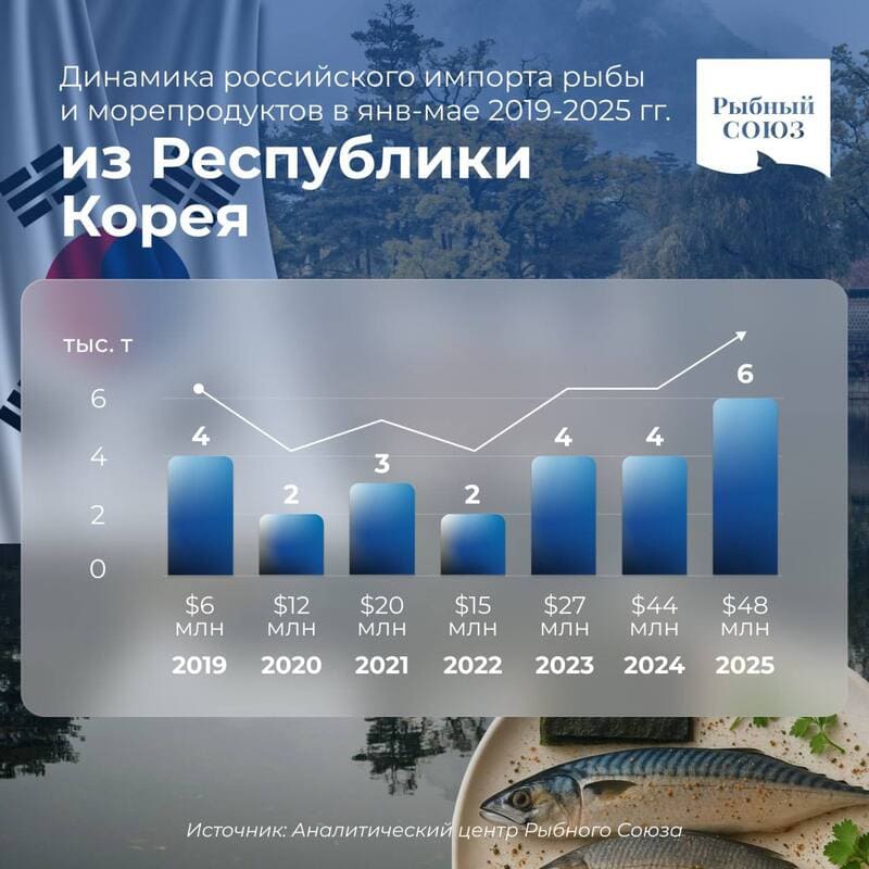 Сокращение поставок из Республики Корея может быть связано с увеличением импорта масляной рыбы из Китая: за 5 месяцев с начала 2025 года привезли (https://t.me/fish_union/2031) 2,5 тыс. тонн (+65% к аналогичному периоду 2024 года).