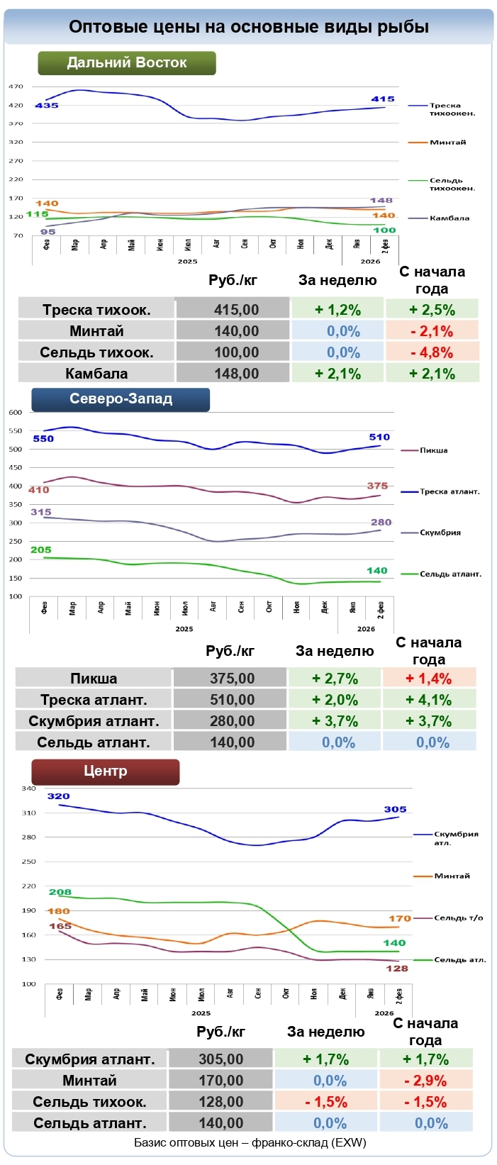 Инфографика: Еженедельный обзор ситуации на оптовом рынке рыбы (26.01-01.02.2026)