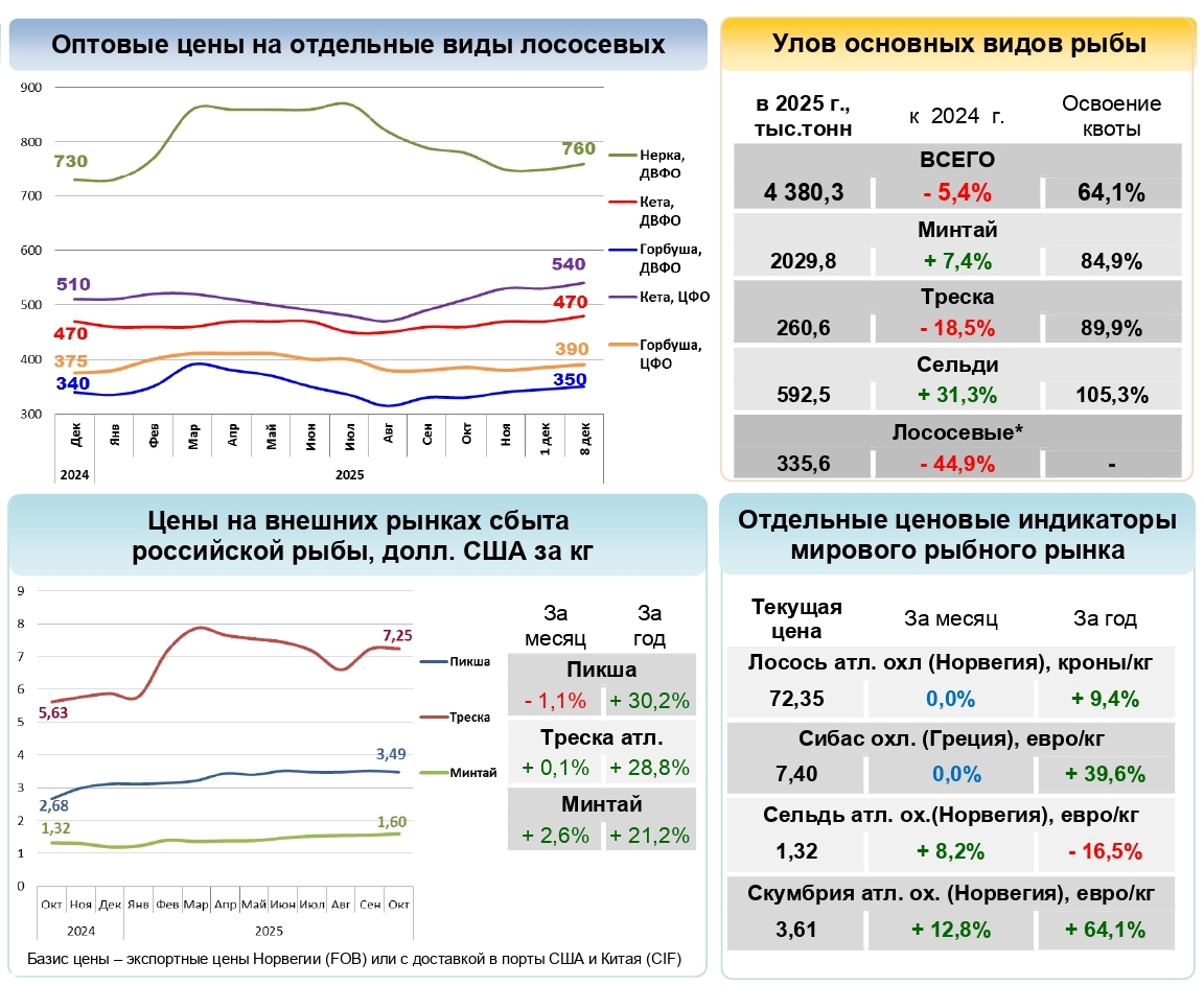 Инфографика: Еженедельный обзор ситуации на оптовом рынке рыбы (49 неделя 2025 года)