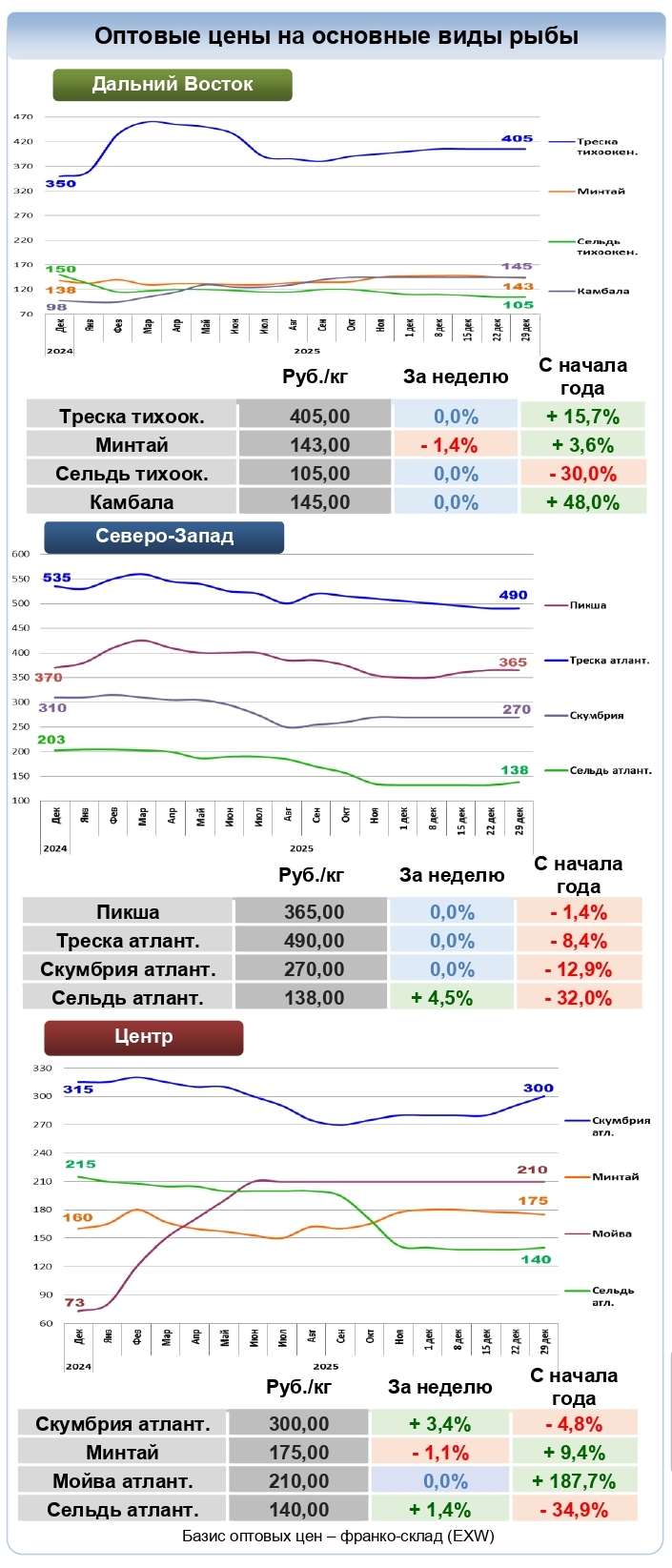 Инфографика: Еженедельный обзор ситуации на оптовом рынке рыбы (52 неделя 2025 года)