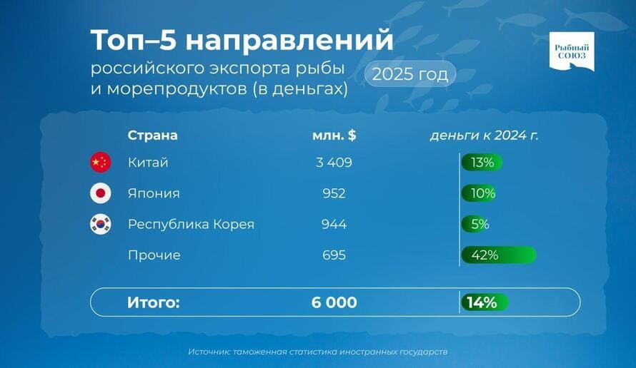 Исследование российского экспорта рыбы и морепродуктов 2025 (инфографика)