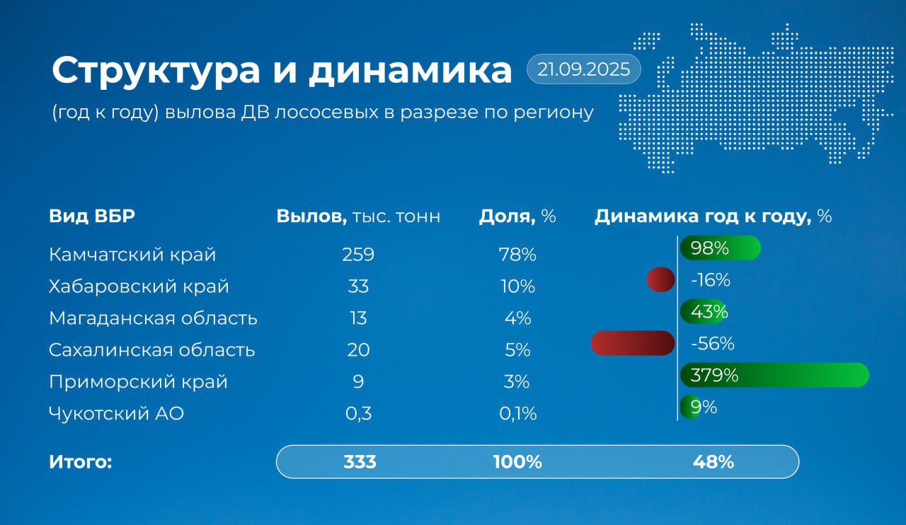 По состоянию на 31 августа 2025 года, производство филе минтая на судах в море достигло 77 тыс. тонн (+16% год к году), филе сельди — 50 тыс. тонн (+7% год к году).