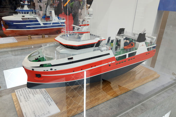 Траулер Т40ОК является совместным проектом калининградского ООО "Адомат" и нижегородского ООО "Си Тех". С макетом судна можно ознакомиться на стенде Калининградской области.