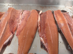 Доп. информация: Верхний плавник, реберная часть, может попадать часть костей от хребтов и верхнего плавника. Лосось из Мурманска (сырьё INARCTICA), собственное