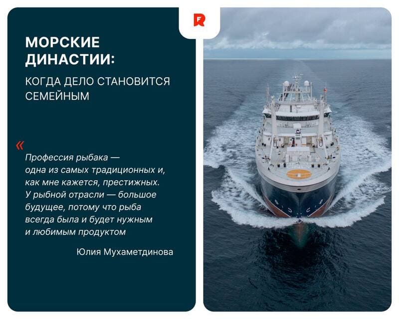 «Профессия рыбака — одна из самых традиционных и, как мне кажется, престижных. У рыбной отрасли — большое будущее, потому что рыба всегда была и будет нужным и любимым продуктом.», — рассказывает Юлия Мухаметдинова.