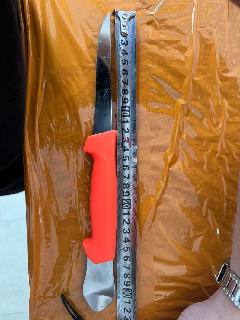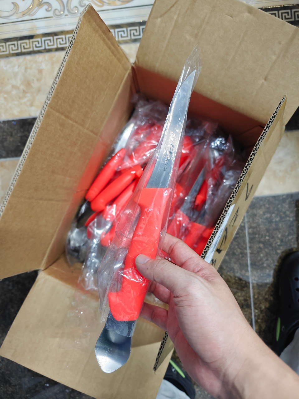 Рыбный нож из нержавеющей стали с ложкой. Артикул KS0026. Нож специальный для потрошения и чистки рыбы используется в рыбных цехах. Лезвие ножа негибкое изготовлено из нержавеющей стали; Ручка ножа изготовлена из пропилена с ложкой; Угол заточки 35 градусов; Нож специальный для потрошения и чистки рыбы.